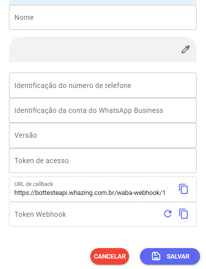 * No Whazing, edite o canal criado e substitua o **Token de Acesso** temporário pelo **Token Permanente**.