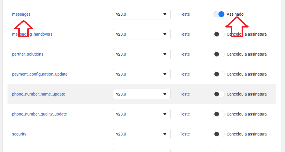 * ✔️ Eventos de mensagem estão habilitados na Meta