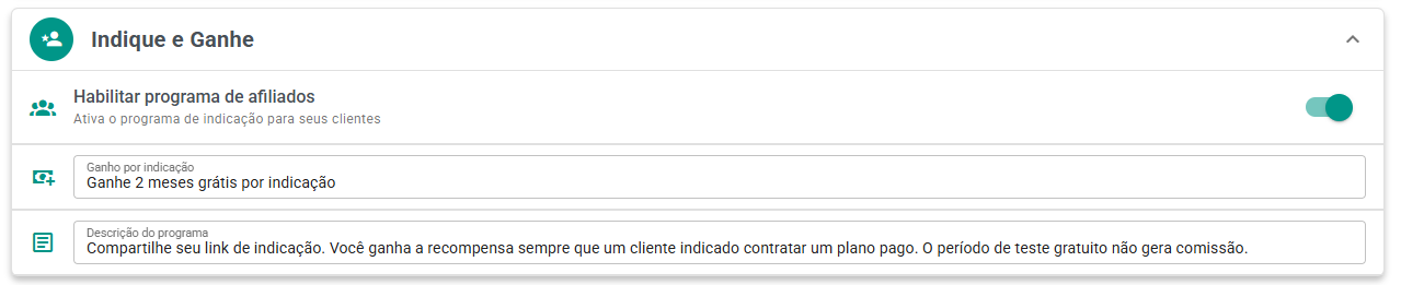 Aqui você define **quanto será pago por cada indicação convertida**.